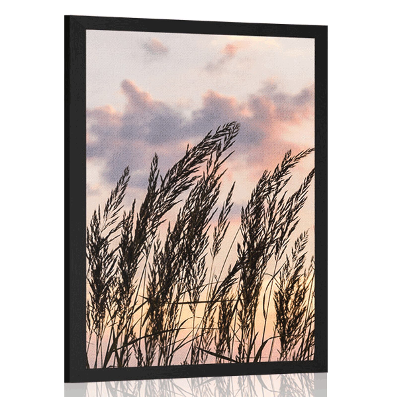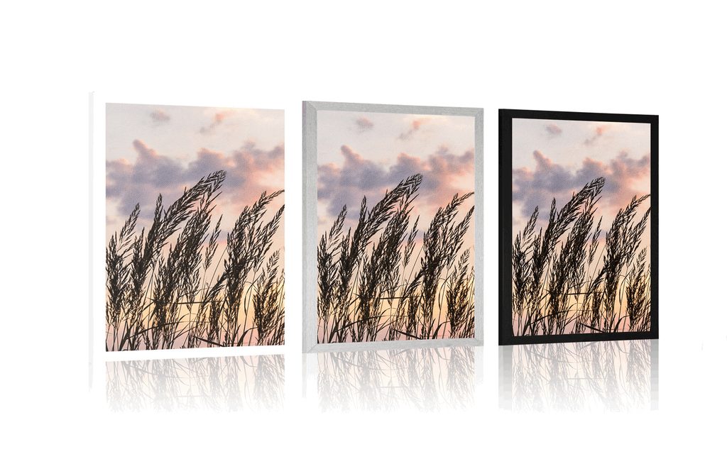 Plakat trava ob zahajajočem soncu