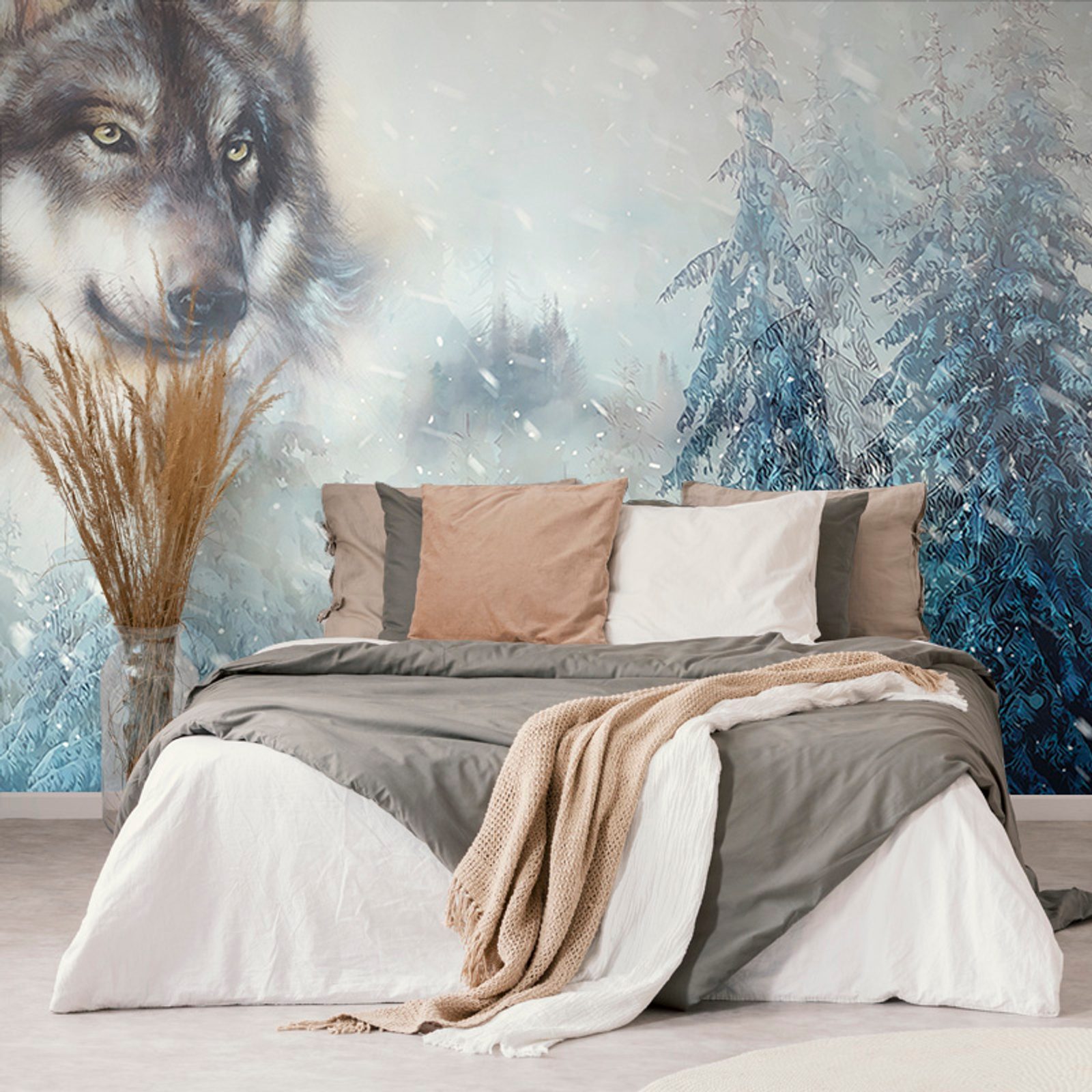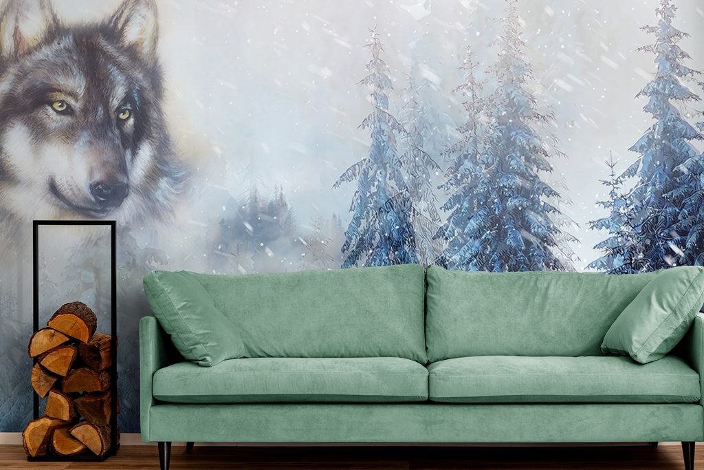 TAPETA VOLK V ZASNEŽENI POKRAJINI - TAPETE - 🔥 TOTALNA ODPRODAJA
